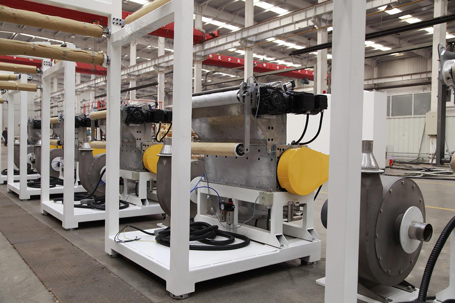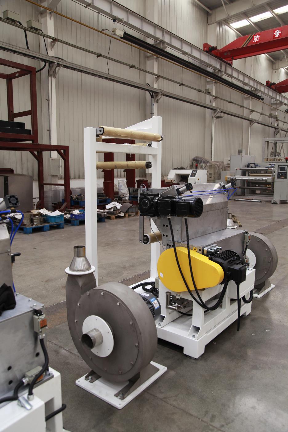 該粉碎系統(tǒng)包含 導(dǎo)輥, 變頻調(diào)速控制喂入對(duì)輥, 粉碎箱, 輸送風(fēng)機(jī), 管道及旋風(fēng)分離器等, 客戶(hù)還可定制混料料斗或儲(chǔ)料箱.